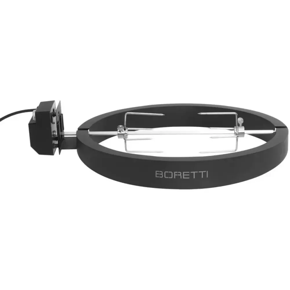 Het Boretti-draaispit is de ideale aanvulling op uw Boretti Ceramica Medium-barbecue. Hiermee bereidt u in een handomdraai heerlijke malse sappige kip, een goede lamsbout of rollade. Dit draaispit zorgt ervoor dat uw vlees gelijkmatig gaar wordt en intussen kunt u heerlijk ontspannen. De sterke motor van deze draaispit is elektrisch aangedreven. Haal het maximale uit uw barbecue ervaring en serveer uw gasten tijdens de barbecue de lekkerste goudgele kipstukjes.
